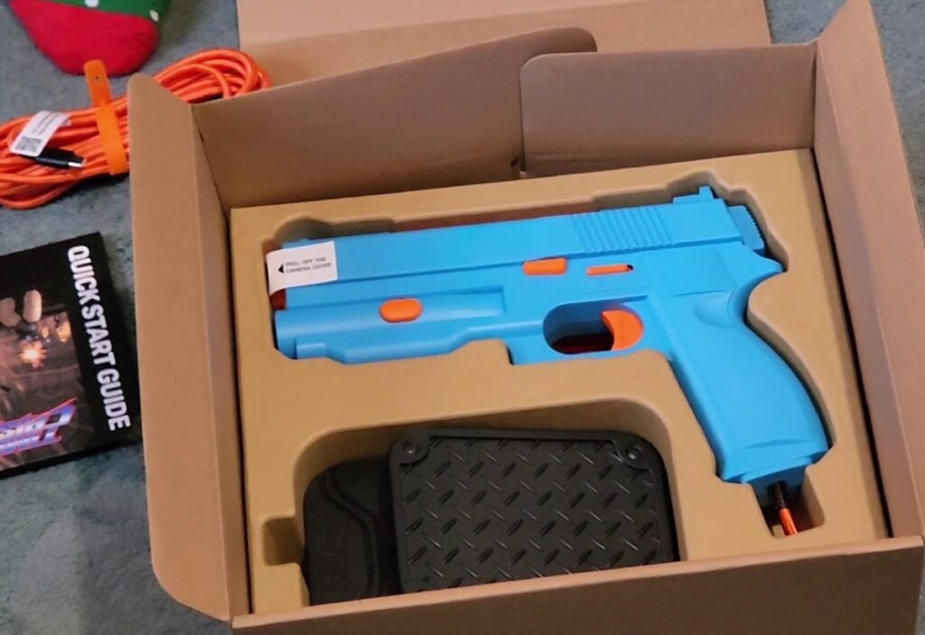 The light gun cameras come with protective labels over the lenses which needs removing before calibration, but this isn’t as easy as it sounds. I found that one of the guns still had its red-tinted adhesive over the lens despite removing the label, about a month after initially unwrapping, calibrating, and playing.