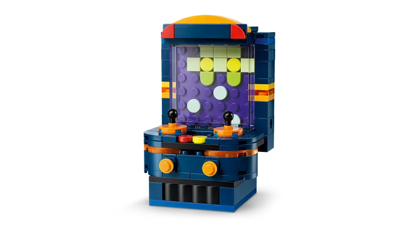 • Arcade cabinet – a tiny upright arcade machine that captures the look of classic coin‑op cabinets in brick form