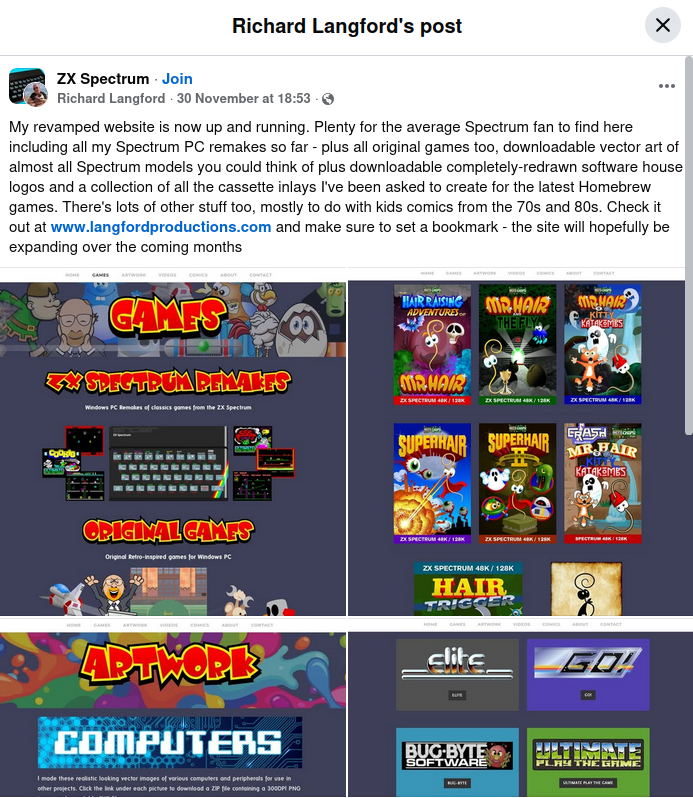If you’re a fan of ZX Spectrum nostalgia (or just curious what the Spectrum looked like through the modern lens), Langford Productions is a must-bookmark resource. Richard Langford has relaunched his site, which collects not just his Spectrum-to-PC remakes, but a treasure trove of retro art, cassette inlays, and downloadable classics.