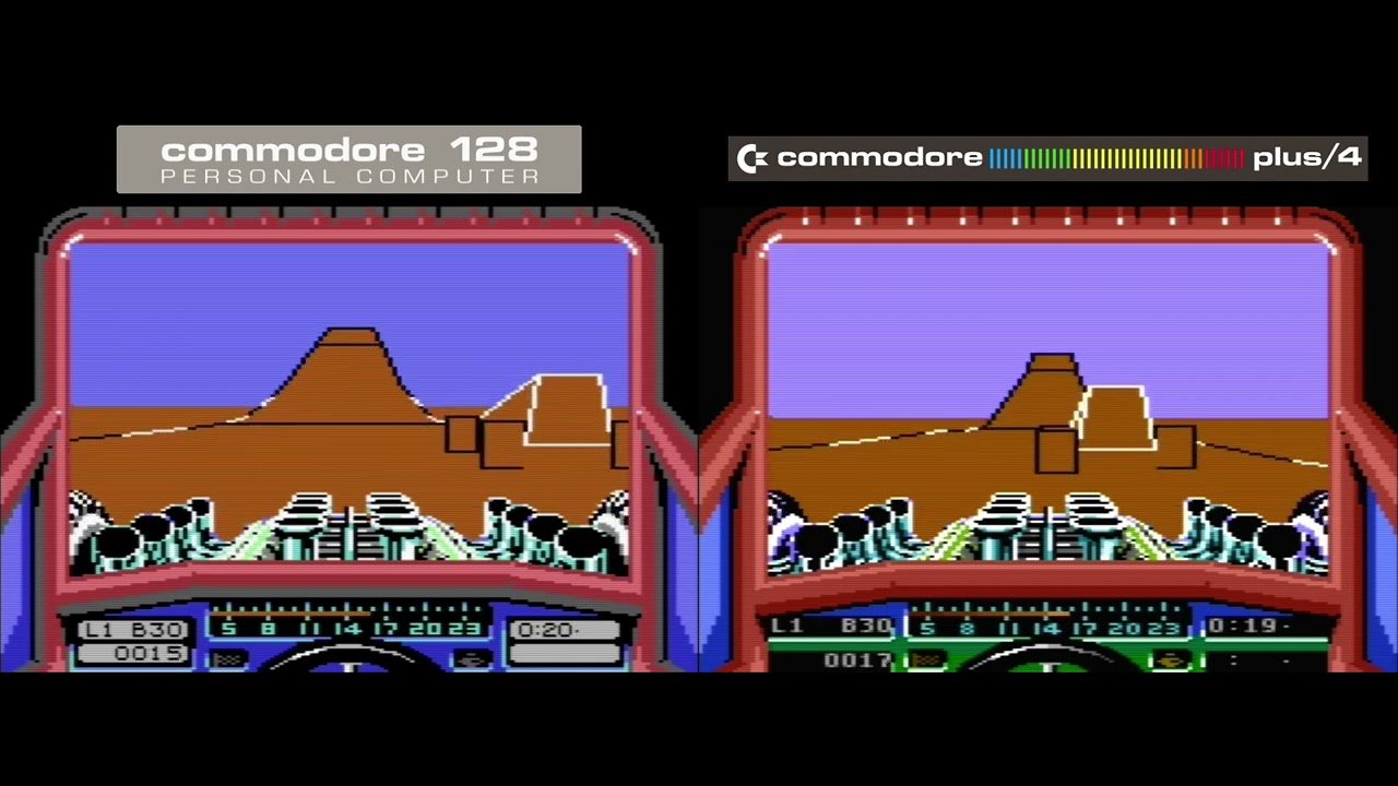 Here’s how the C128 version compares with the impressive Plus/4 Stunt Car Racer port.