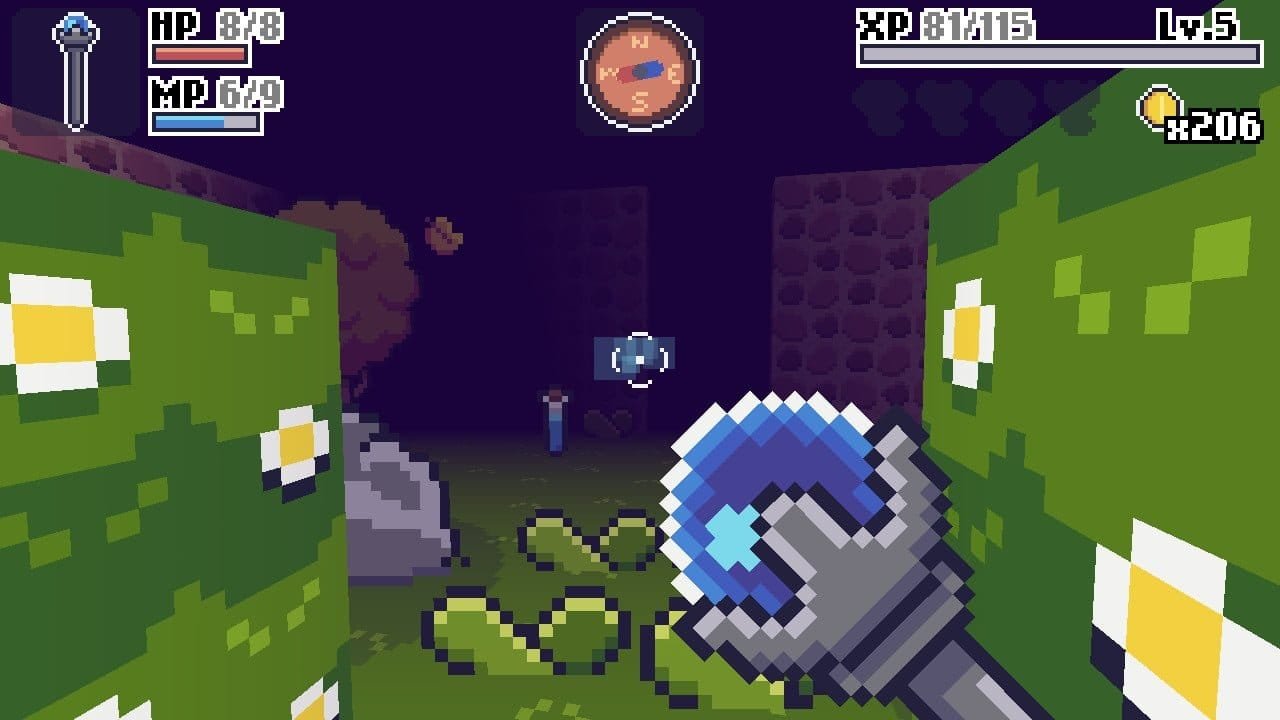 WIth plenty of paths to explore and zones to unlock, success in the game means finding everything and leveling up. Upgrading to a magical staff (these are colour coded and can be used to unlock specific routes) makes combat a little easier. While the blobs are relatively straightforward to dispatch, the bats you encounter later are trickier, requiring a different slashing tactic. Shooting orbs from the staff from distance is easier, but your magic points reduce and take time to replenish.