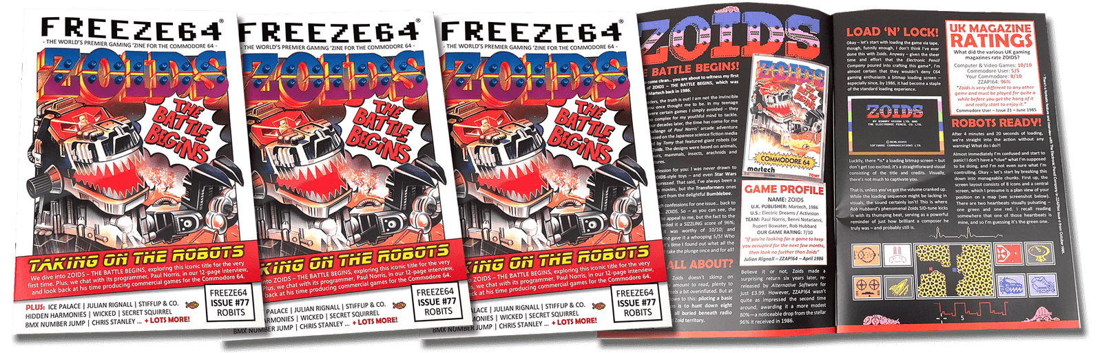 FREEZE64 #77 includes Vinny’s first play of Zoids: The Battle Begins, as well as an in-depth interview with its developer, Paul Norris.